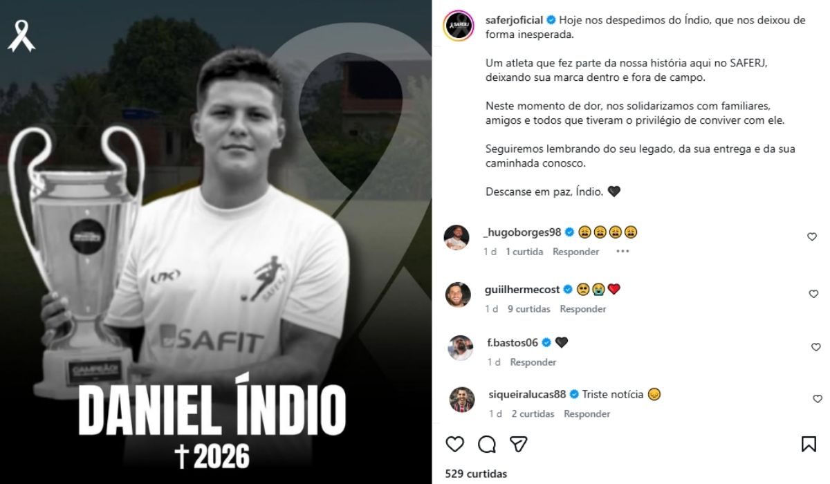 Nos comentários da publicação, jogadores como Fellipe Bastos, Guilherme Costa, Lucas Siqueira e Hugo Borges, todos com passagem pelo Vasco, expressaram seu lamento pela morte de Daniel Pessoa. A causa do falecimento não foi divulgada, e o último registro profissional do ex-atacante foi no Mageense-RJ, em 2024, na 4ª divisão do Campeonato Carioca.
