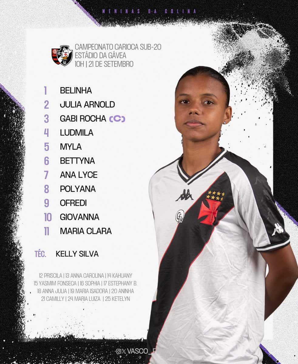 Feminino Base: Escalação do Vasco para o jogo contra o Flamengo no Carioca Sub-20