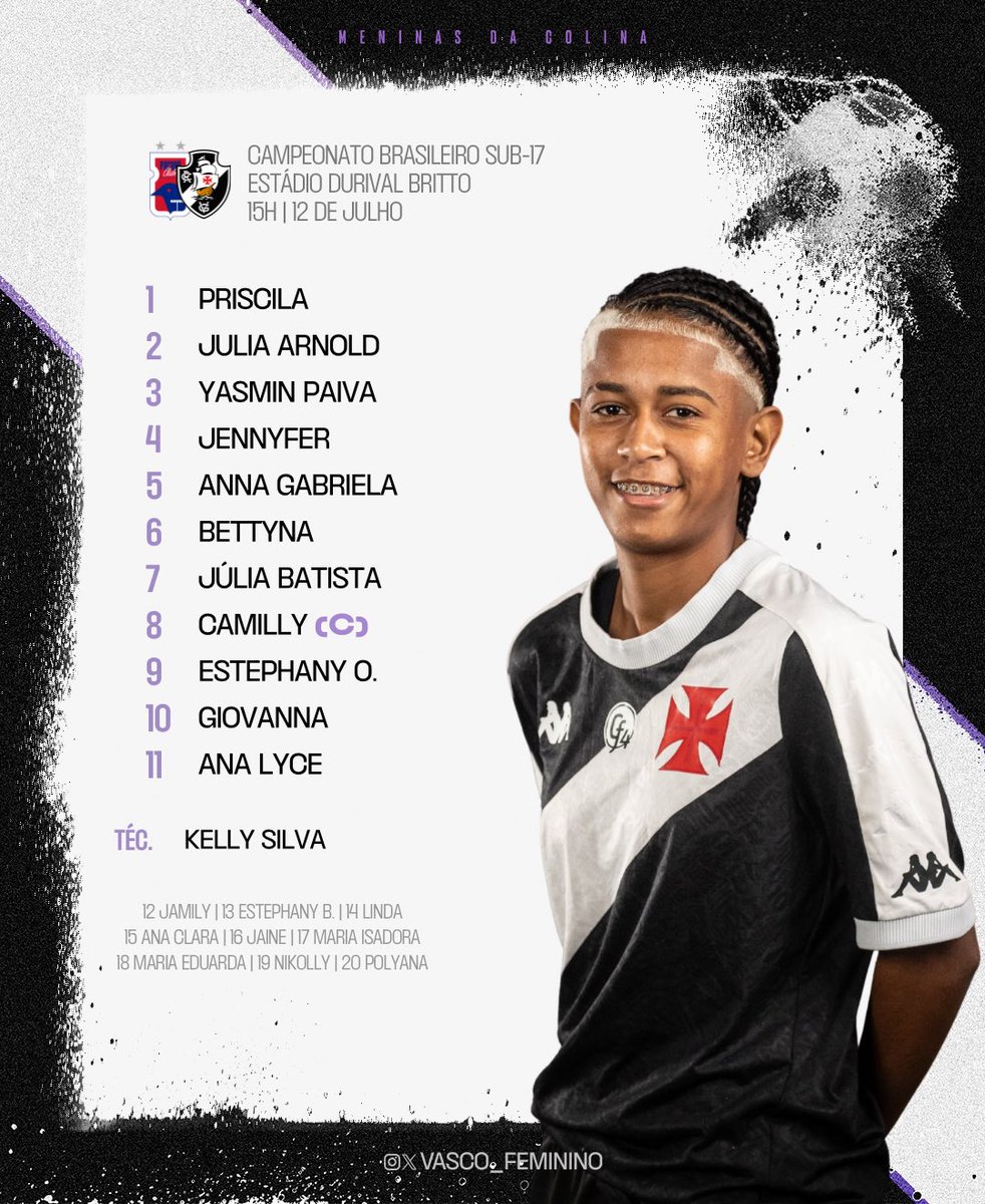📋 Confira a escalação das #CriasDaColina para o confronto contra o Paraná, marcado para às 15h! VAMOSSS! 🫡💢