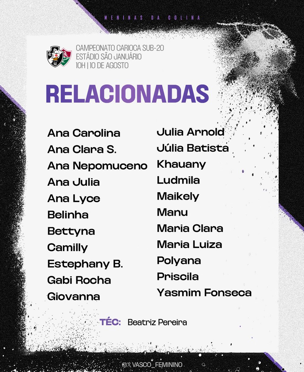 📜 Confira as 𝓒𝓻𝓲𝓪𝓼 para o clássico diante do Fluminense, válido pelo Campeonato Carioca Sub-20, programado para as 10h! 💢