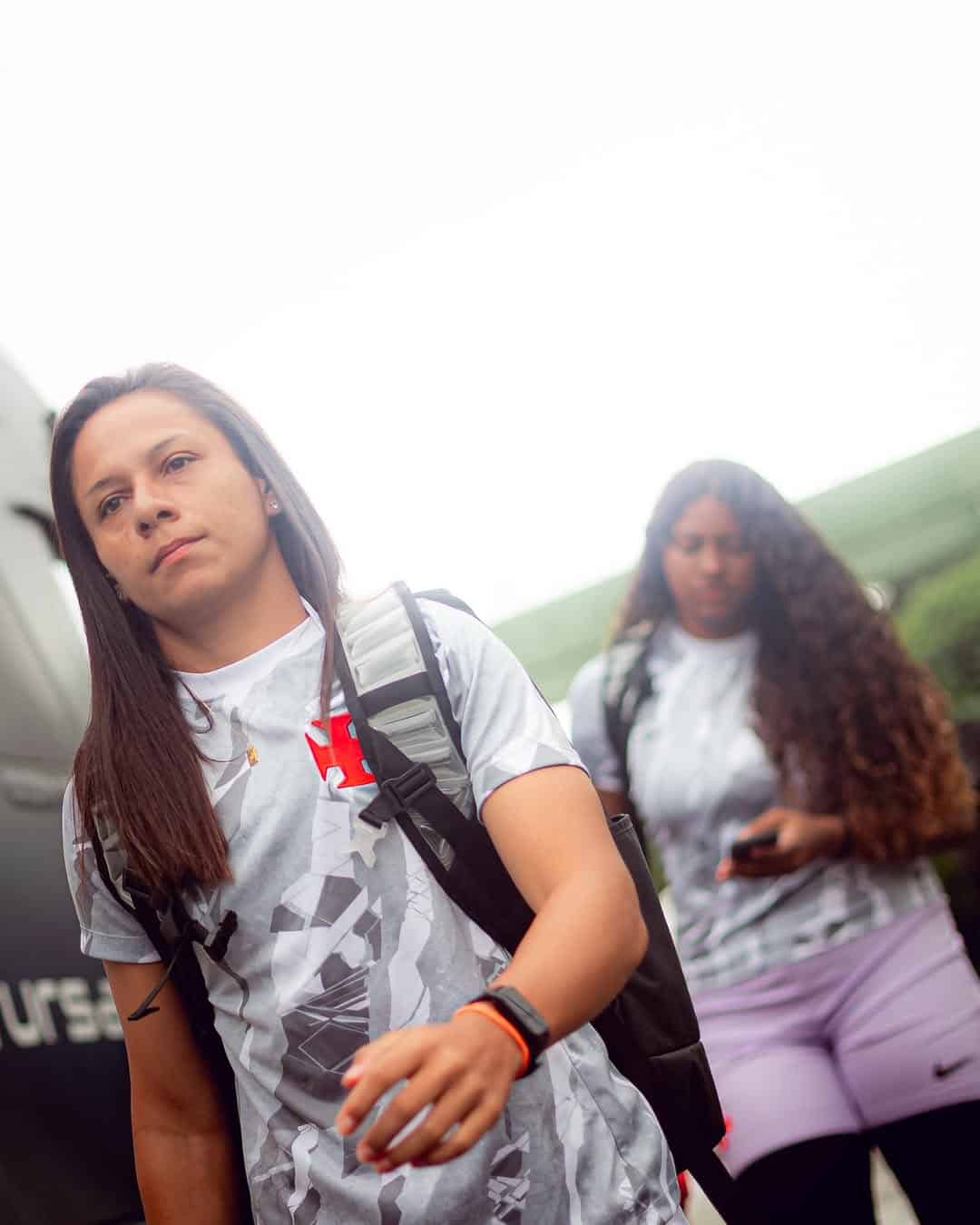 As jogadoras do Vasco chegam ao Nivaldão para enfrentar o Fluminense no futebol feminino.