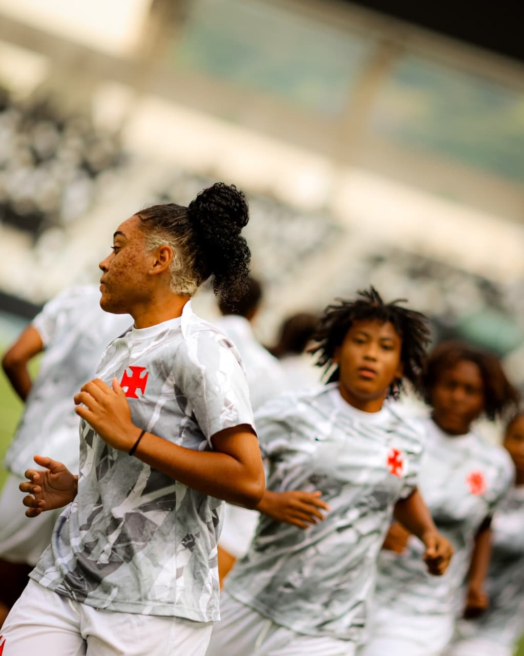 Imagens mostram o aquecimento das jogadoras do Vasco no time feminino sub-20.