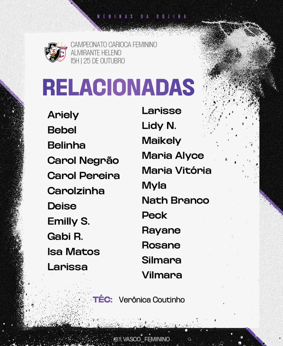 📄 Confira a lista das #MeninasDaColina convocadas para o confronto contra o Búzios, marcado para às 15h. 💢
