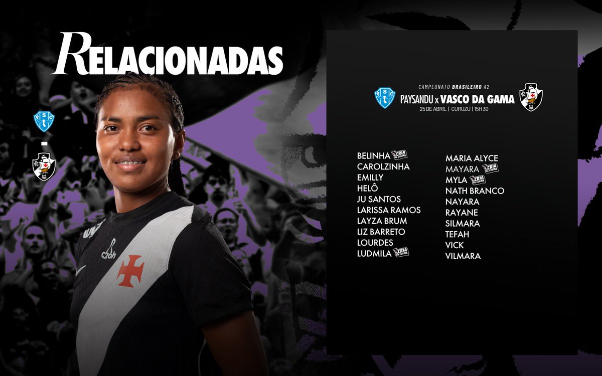 Vasco divulga as jogadoras convocadas para a partida contra o Paysandu no futebol feminino