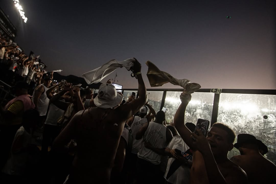 Vaso do estádio do Vasco, torcida vibrando juntos.