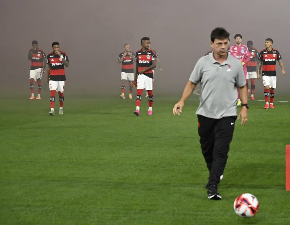 – Eu não acho que atrapalhou no jogo de hoje. Acho que a gente jogou mal no primeiro tempo, a gente saiu jogando em algumas vezes com lentidão, não todas as vezes. Uma coisa que a gente também fez muito mal foi demorar muito a pressionar o Flamengo. Nas vezes em que pressionou, o Rossi chutou a bola para fora ou chutou para frente sem direcionamento. Faltou jogar mais dentro das nossas características e fazer uma partida melhor. Repito: aparentemente, quando a gente voltou para o segundo tempo, o jogo ia ser outro. Tudo indicava que a gente ia ter uma postura mais agressiva tanto na marcação quanto com a bola.