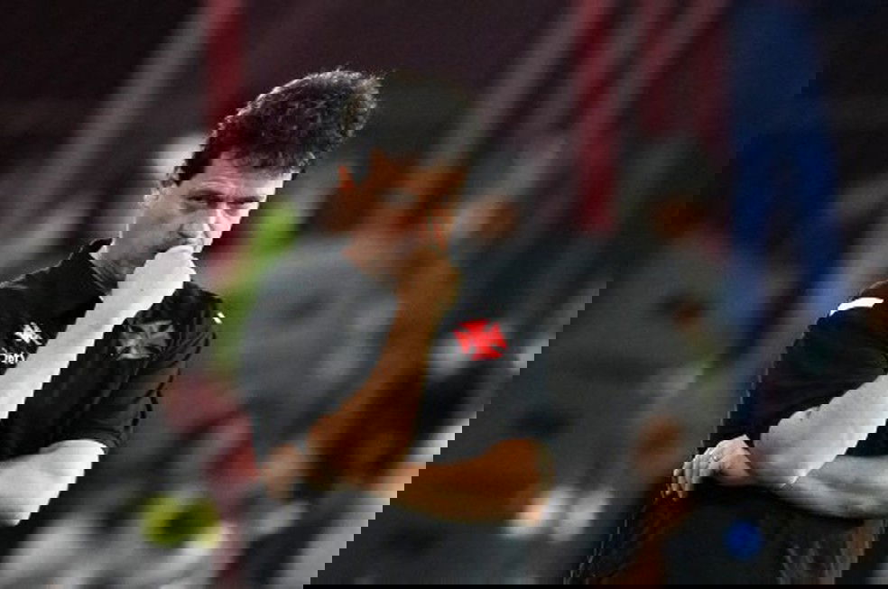 Homem pensativo com uniforme do Vasco da Gama.