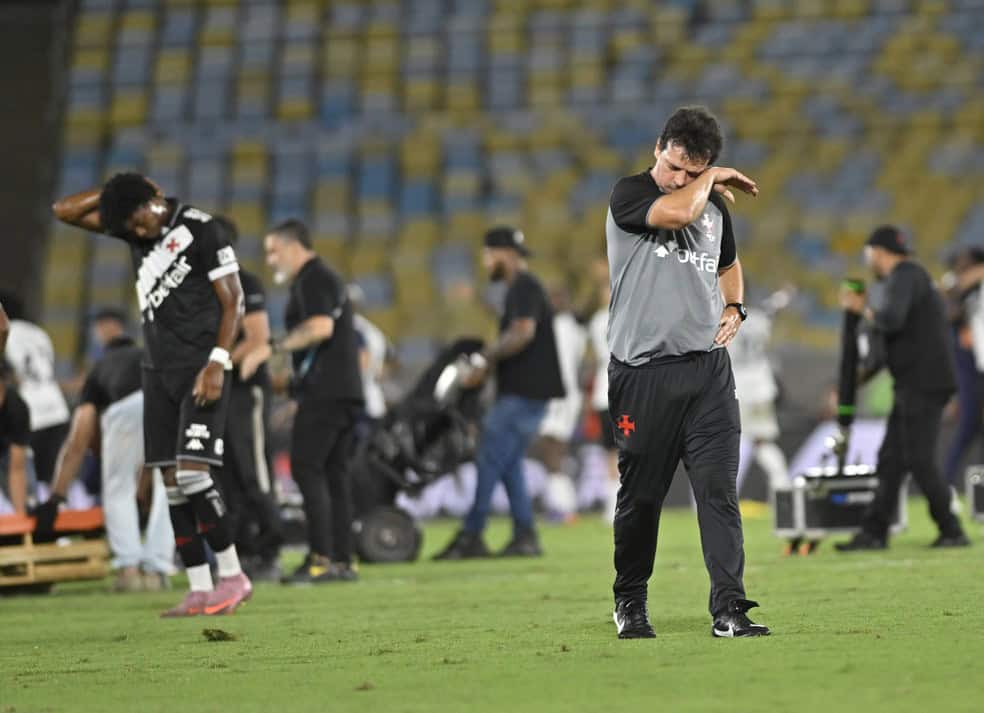 Fernando Diniz e seu filho, Diego, viveram um momento de intensa emoção na saída do Maracanã, após a derrota do Vasco para o Corinthians na final da Copa do Brasil. O técnico, visivelmente comovido, abraçou e tentou confortar o filho, que chorava ao seu lado no estacionamento.