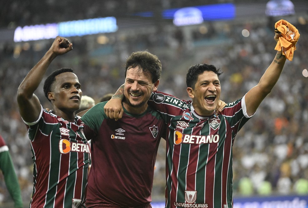 John Arias, Fernando Diniz e Germán Cano, do Fluminense — Foto: André Durão