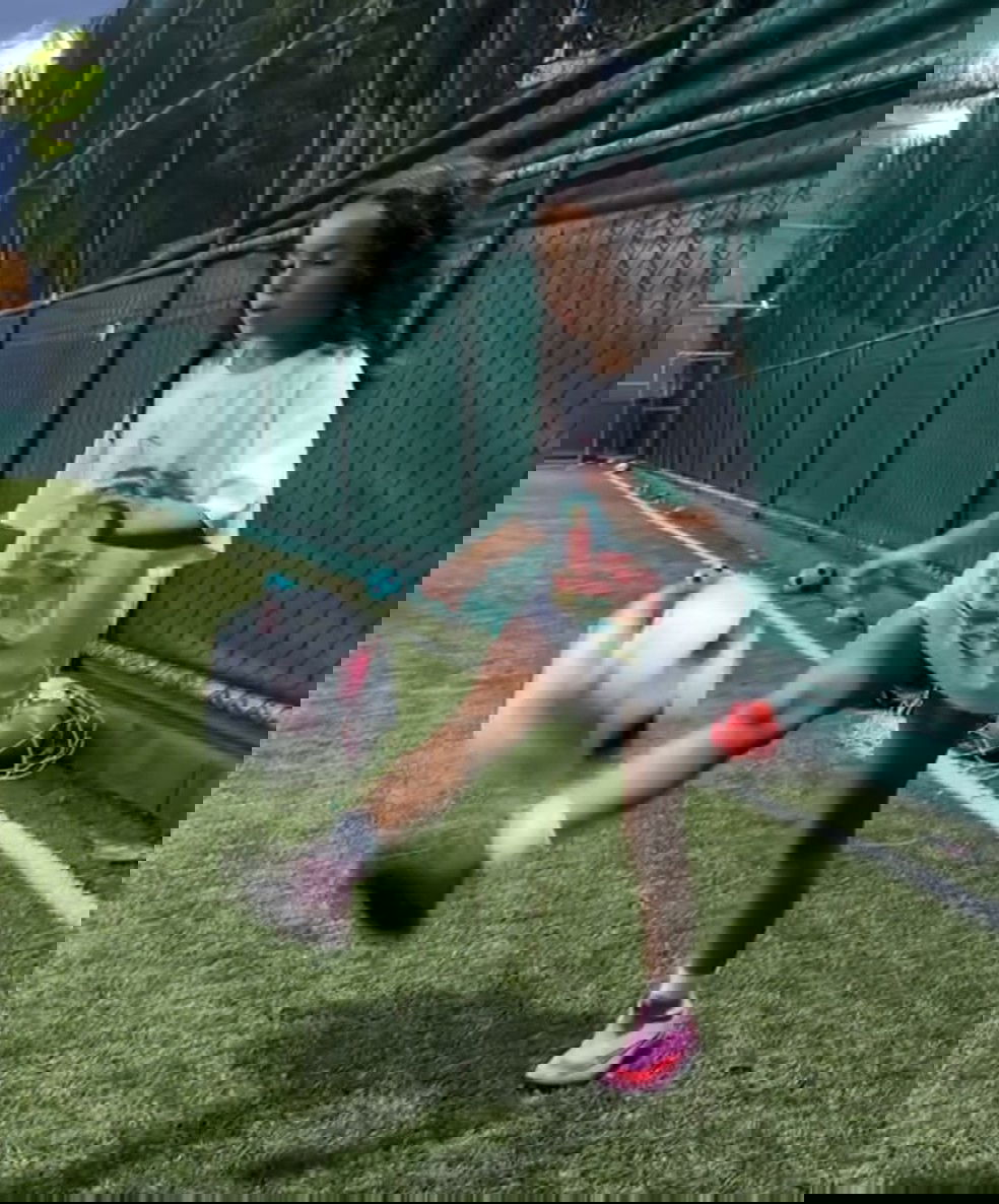 Vestindo uma chuteira rosa, a menina de nove anos realiza mais de 30 embaixadinhas enquanto sua mãe, muito orgulhosa, capta cada momento. Confira o vídeo acima para ver essa performance!