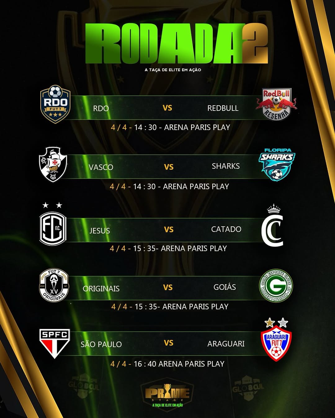 Confira os confrontos da segunda rodada da Prime Stage. A disputa segue intensa na corrida pela taça.