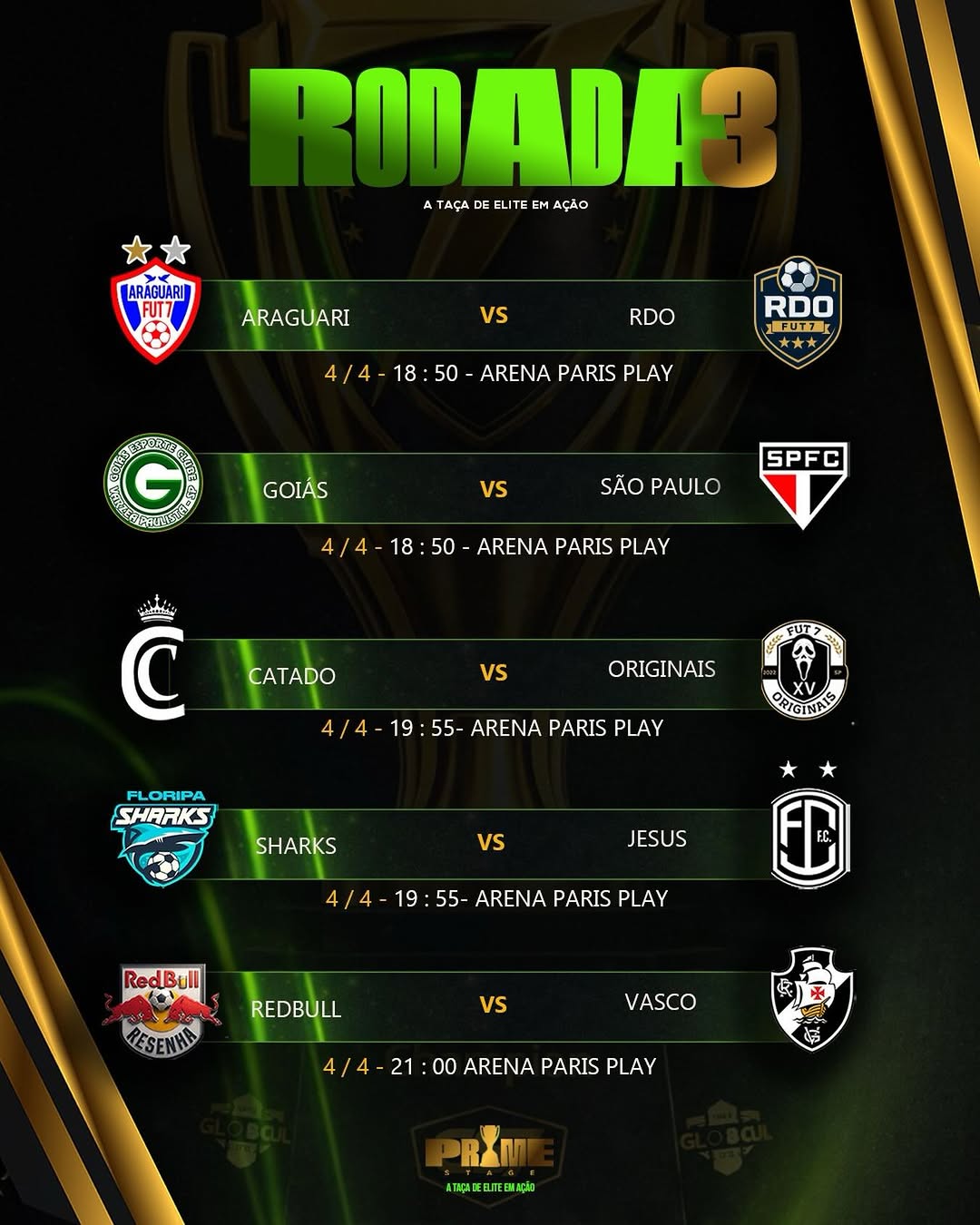 Confira os confrontos que fecham a fase de rodadas da Prime Stage. Agora cada jogo pode definir o caminho até a taça.