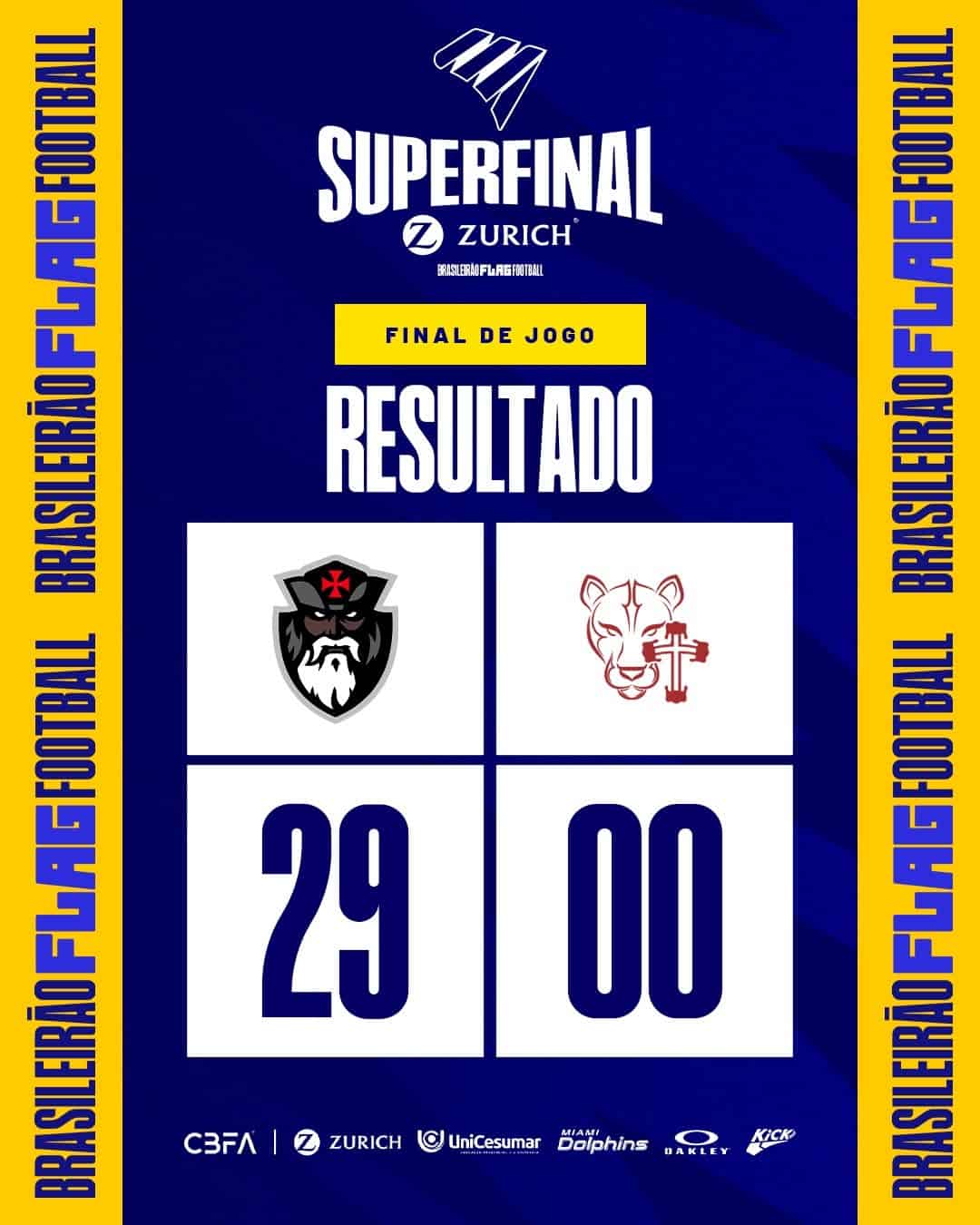 Vitória do @vascoalmirantes na disputa contra o @portuguesalioness durante as quartas de final da Super Final @zurichnobrasil. A transmissão do jogo está disponível em youtube.com/@CBFATV. Confira o link na bio! #FLAGFOOTBALLBR #FLAGBRA