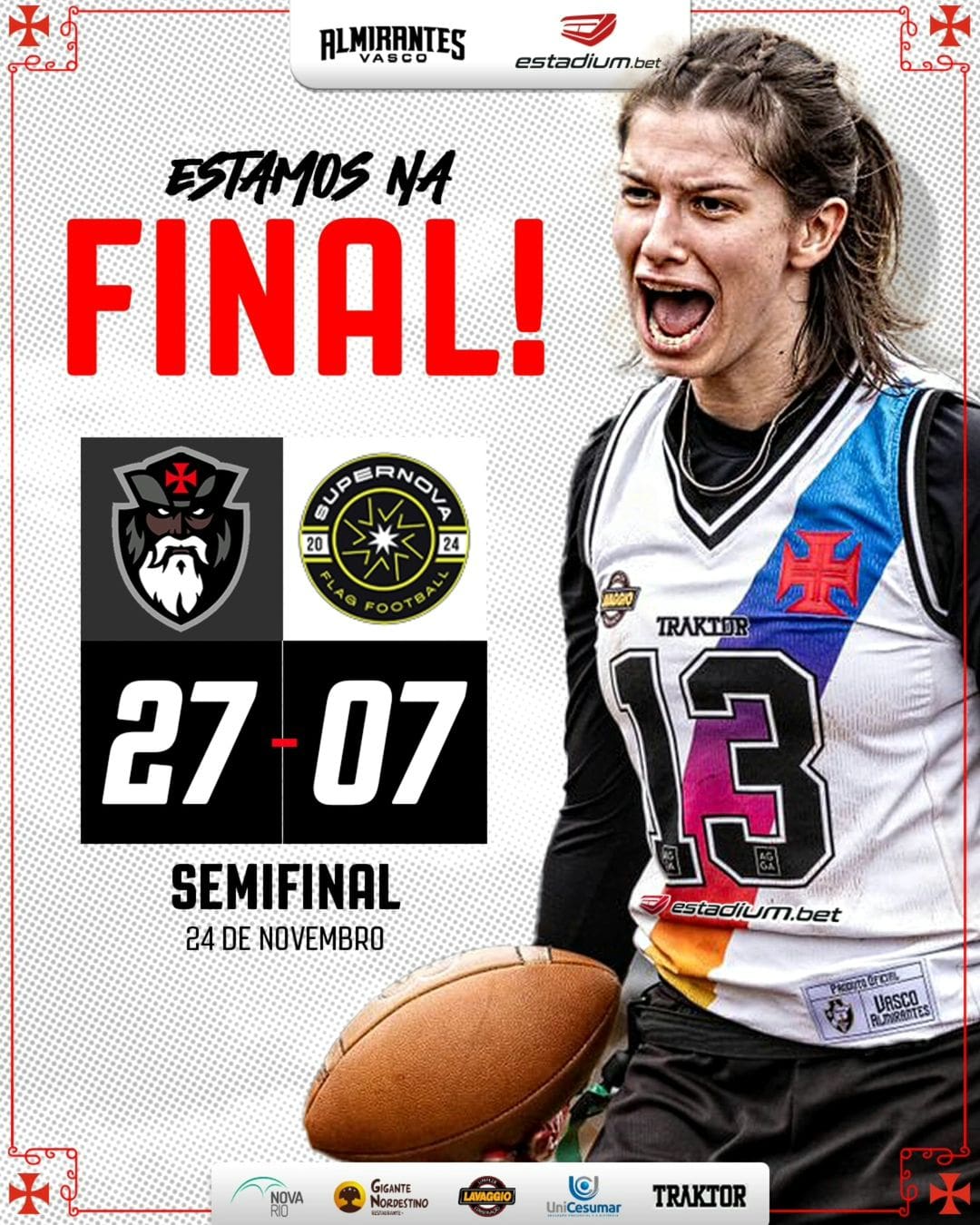 Após um triunfo de 27 a 7 contra o Supernova, o Vasco Almirantes assegura sua presença na disputa final da conferência Metropolis do Campeonato Paulista.