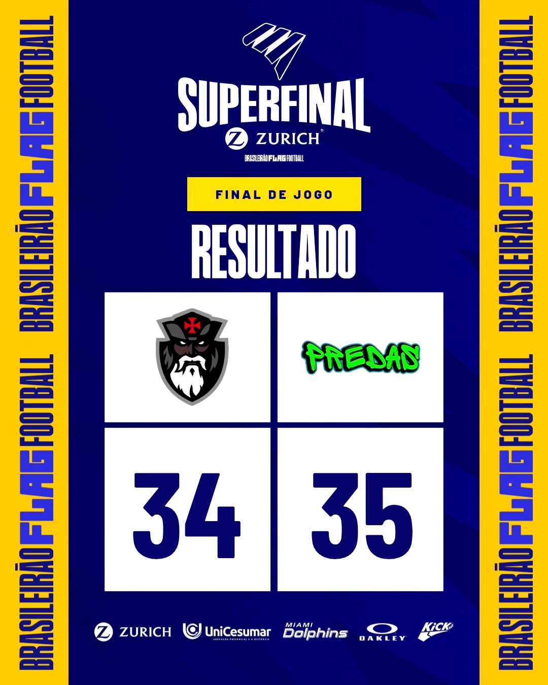 Vitória dos @predadoresflag na partida contra o @vascoalmirantes durante a fase regular da Super Final @zurichnobrasil! Não perca a transmissão do jogo em youtube.com/@CBFATV – o link está na bio. #FLAGFOOTBALLBR #FLAGBRASIL