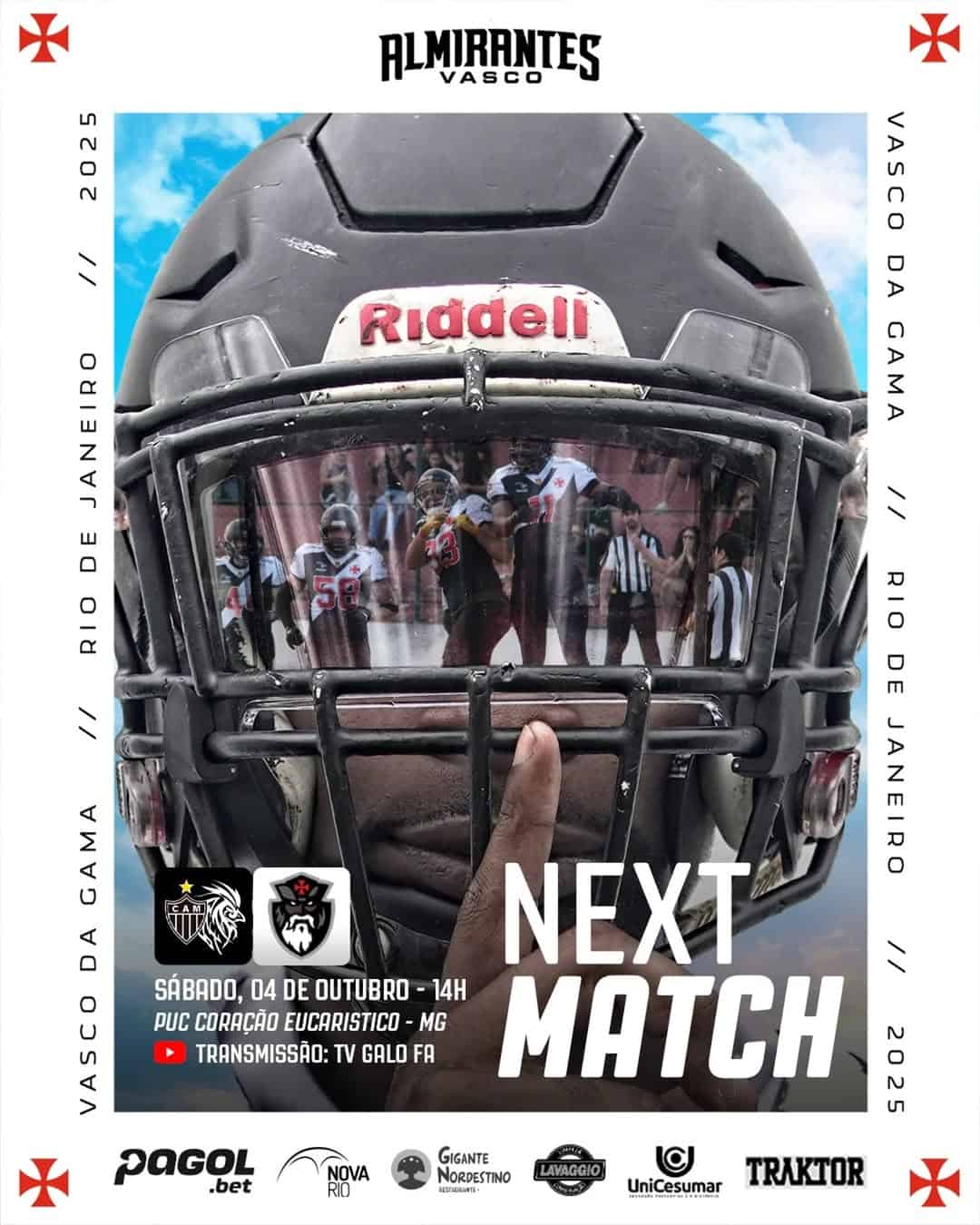 Futebol Americano: Vasco duela contra o Atlético-MG neste sábado às 14h pelo wild card da Superliga.