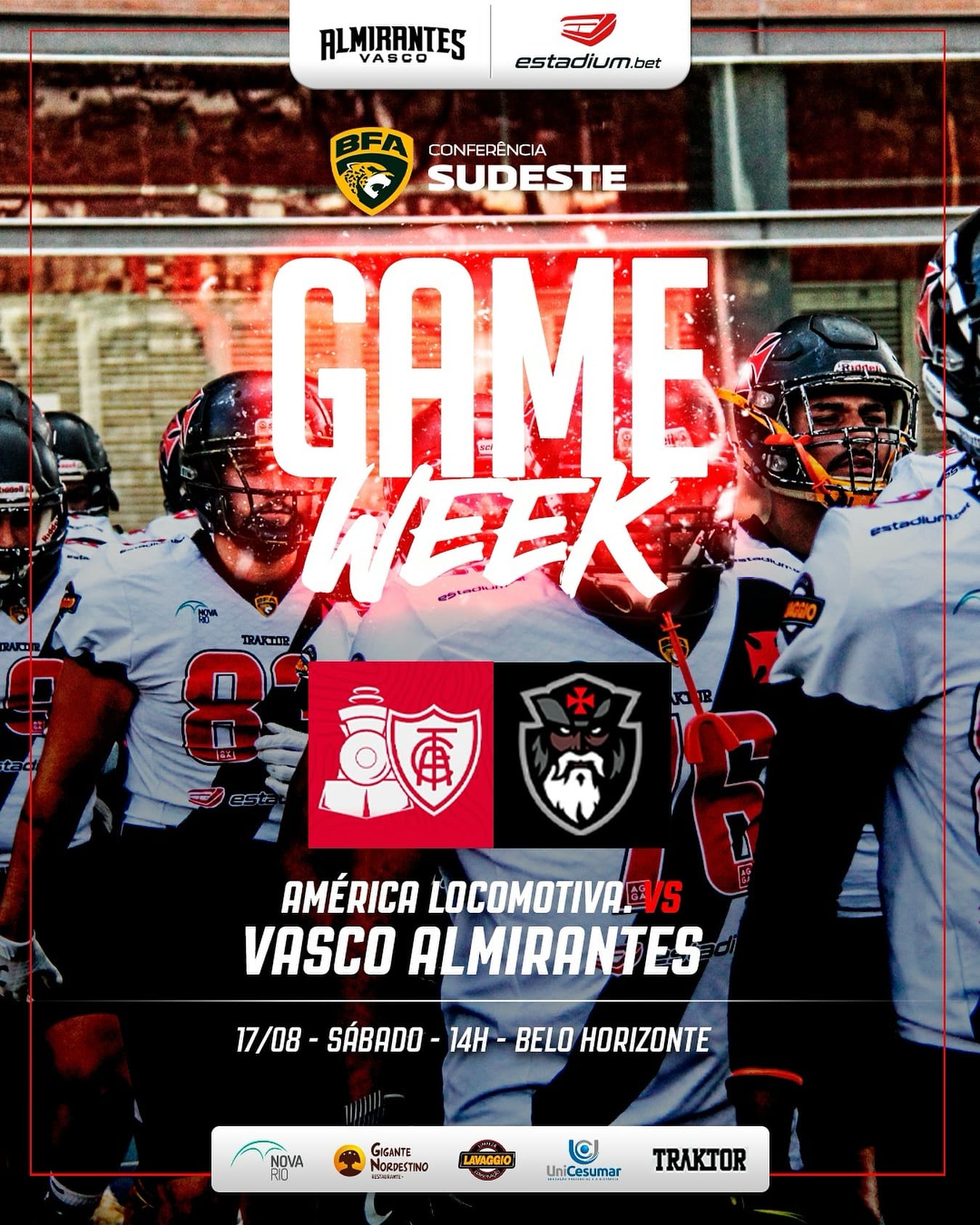 Jogo de Futebol Americano: Vasco encara o América Locomotiva neste sábado em Belo Horizonte às 14h terça-feira, 13/08/2024 às 03:29 — Em Futebol Americano
