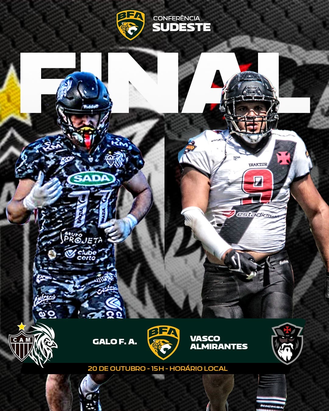 Futebol Americano: Neste domingo, às 15h, o Vasco enfrenta o Atlético-MG na final da Conferência Sudeste da BFA. domingo, 20/10/2024 às 05:27 — Em Destaques
