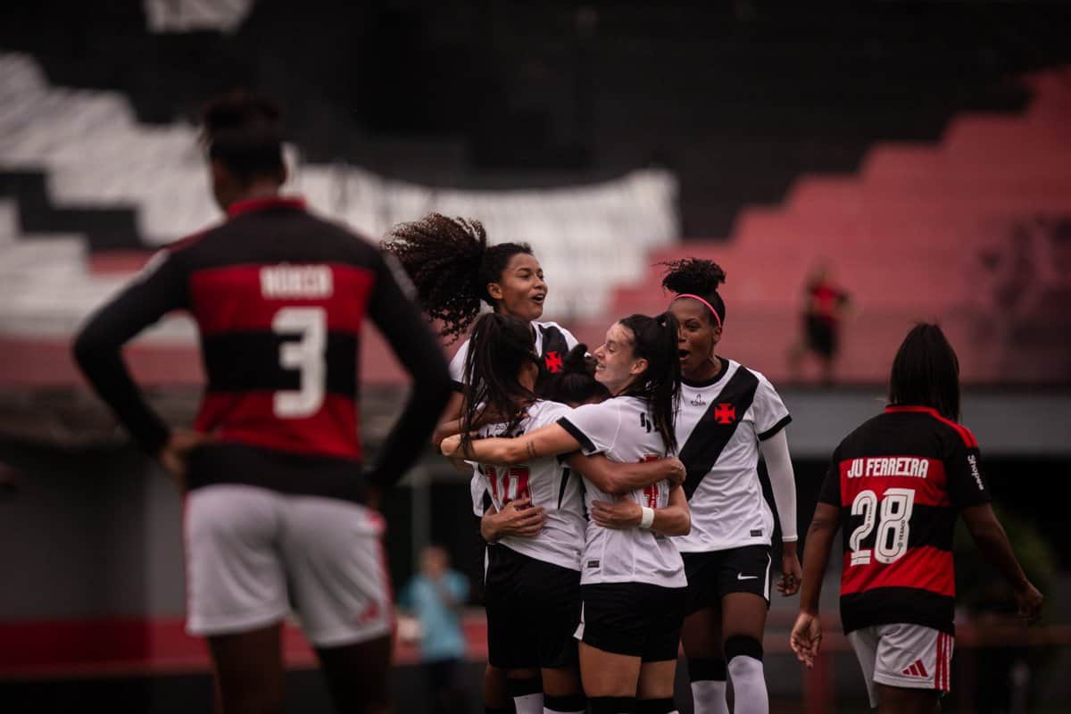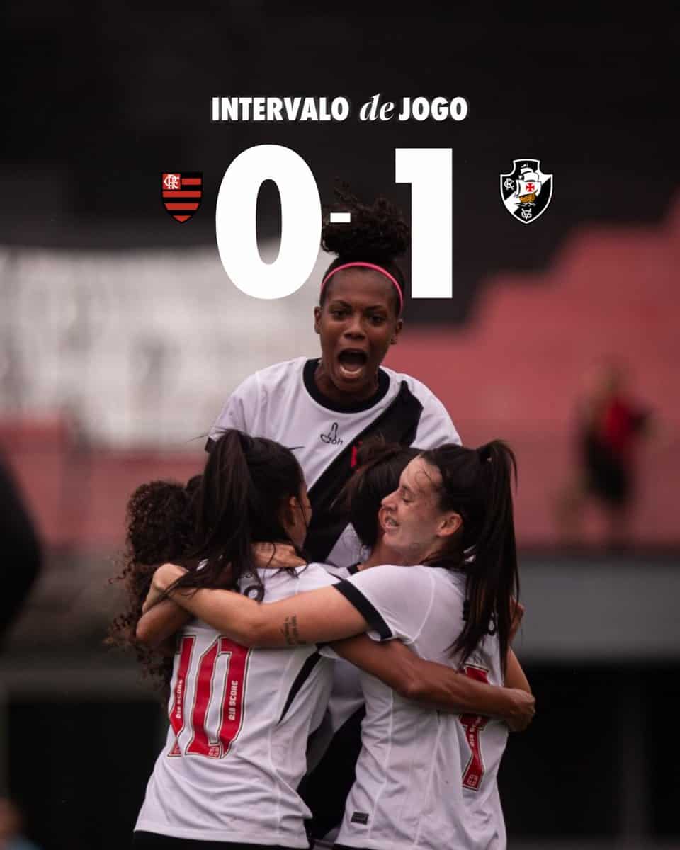 O Vasco está à frente no placar, vencendo por 1 a 0, com um gol marcado por Carolzinha.