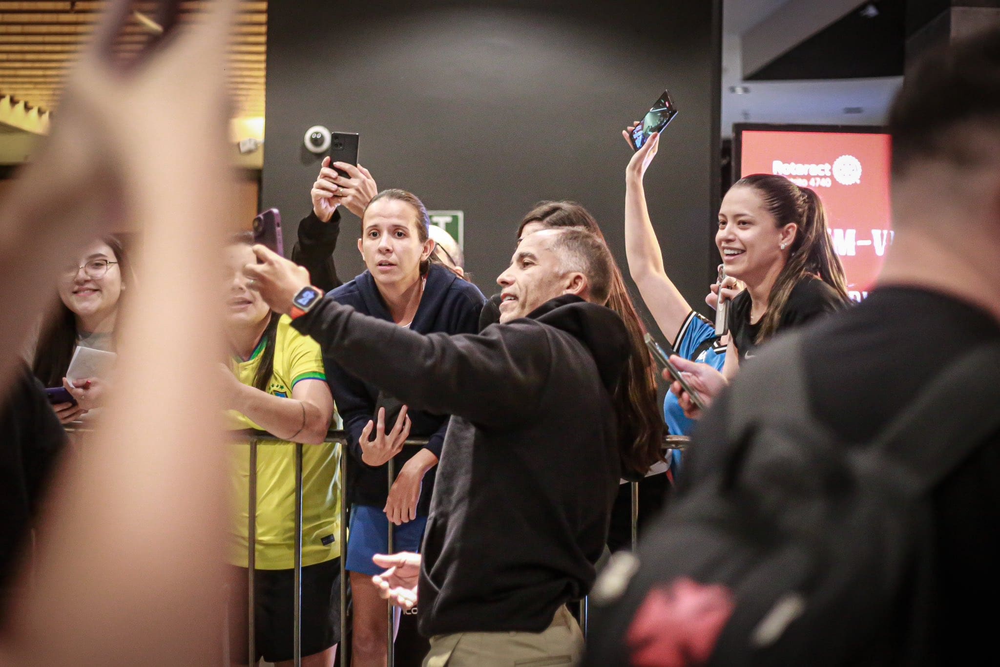Recebendo o apoio caloroso da torcida ao desembarcar em Chapecó ❤️💢