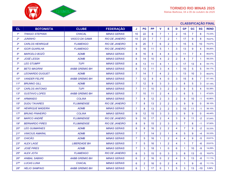 Abaixo, confira a classificação final do XI Torneio Rio – Minas (Regra 3 Toques):