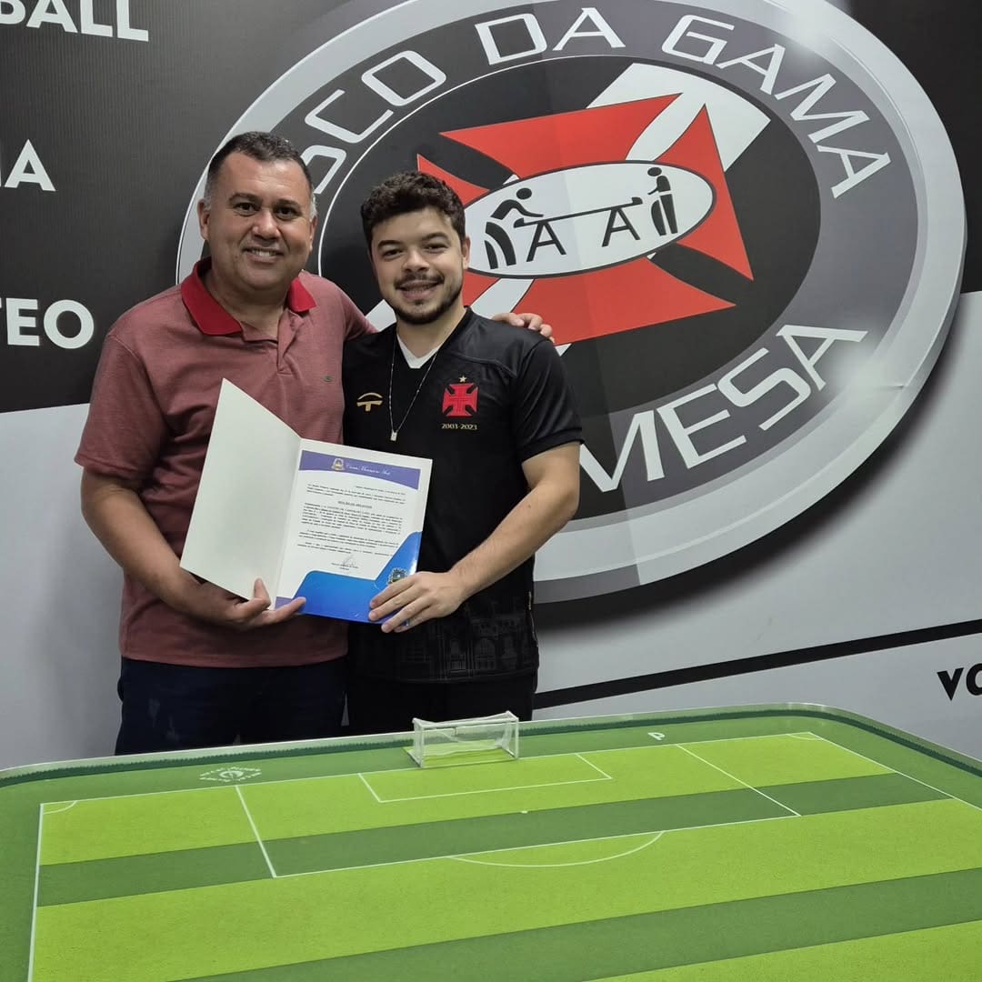 👏 A Homenagem, que foi aprovada por unanimidade na Câmara de Vereadores de Areal, valoriza a dedicação e o comprometimento do atleta vascaíno em promover o futebol de mesa e sua contribuição para o desenvolvimento do esporte.