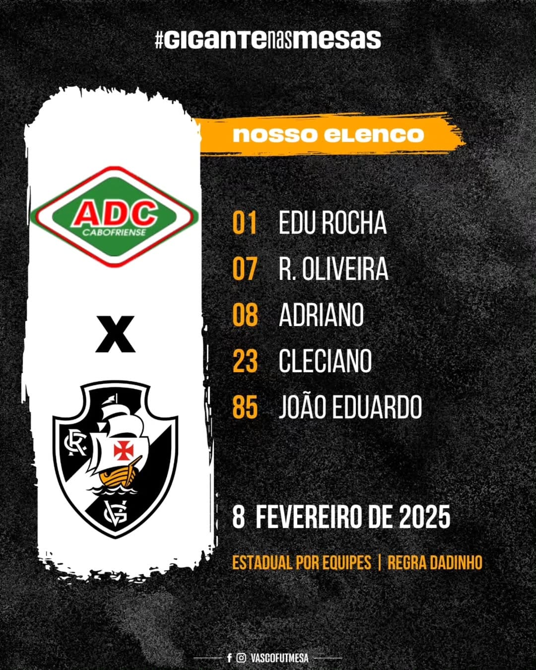 Neste sábado (8/2), começa o Estadual de Equipes 2025, contando com 17 clubes na disputa, prometendo ser uma das temporadas mais empolgantes e equilibradas do futebol de mesa carioca, na regra Dadinho 9 x 3. Para abrir a competição, a Cabofriense, que faz sua estreia sob o comando do ex-atleta André ‘Balada’ Felipe, enfrenta o tradicional Vasco da Gama, um dos grandes favoritos para levar o título.