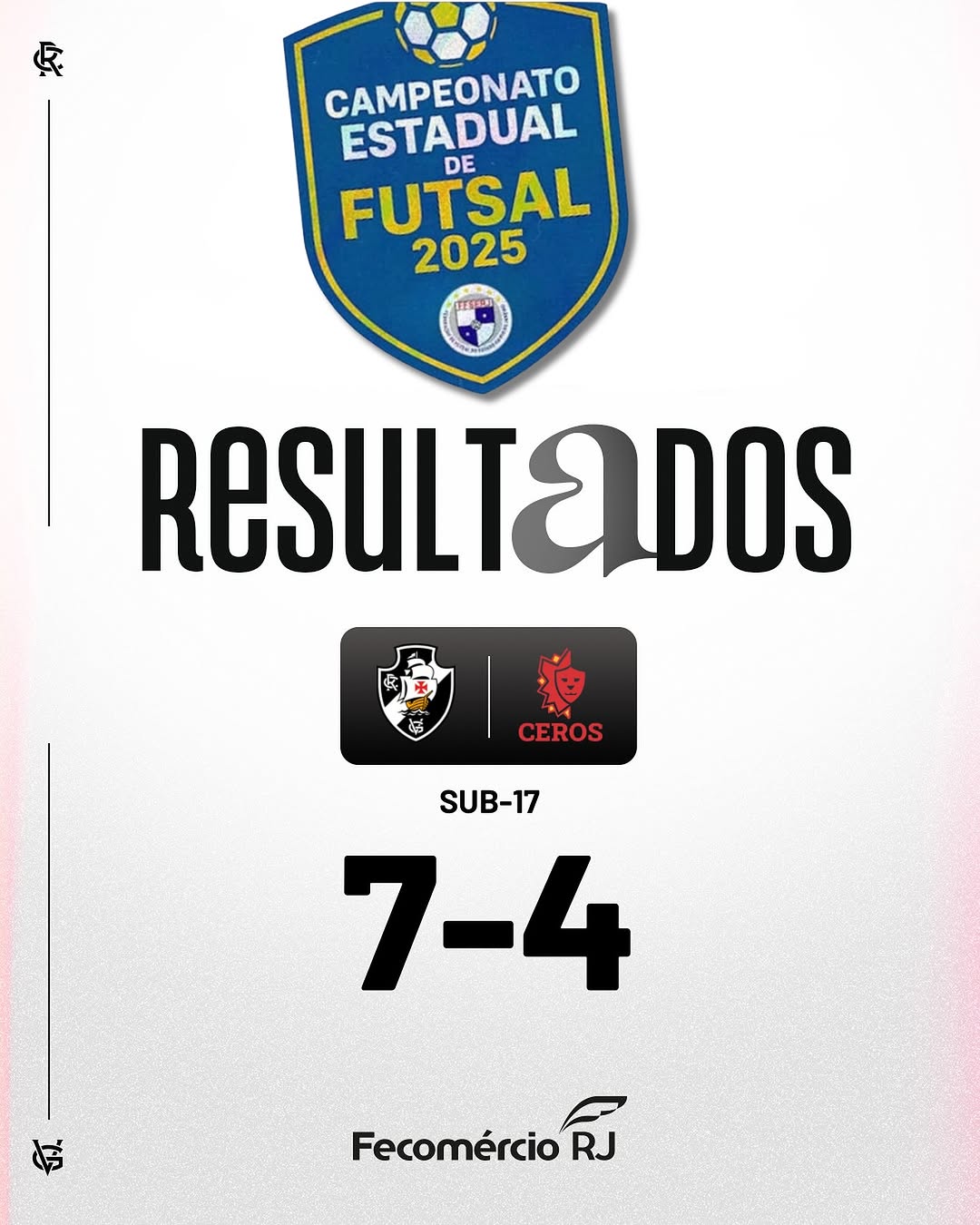 Futsal Base: Vasco vence o Madureira com um expressivo 7 a 0 fora de casa pelo Campeonato Estadual Sub-20