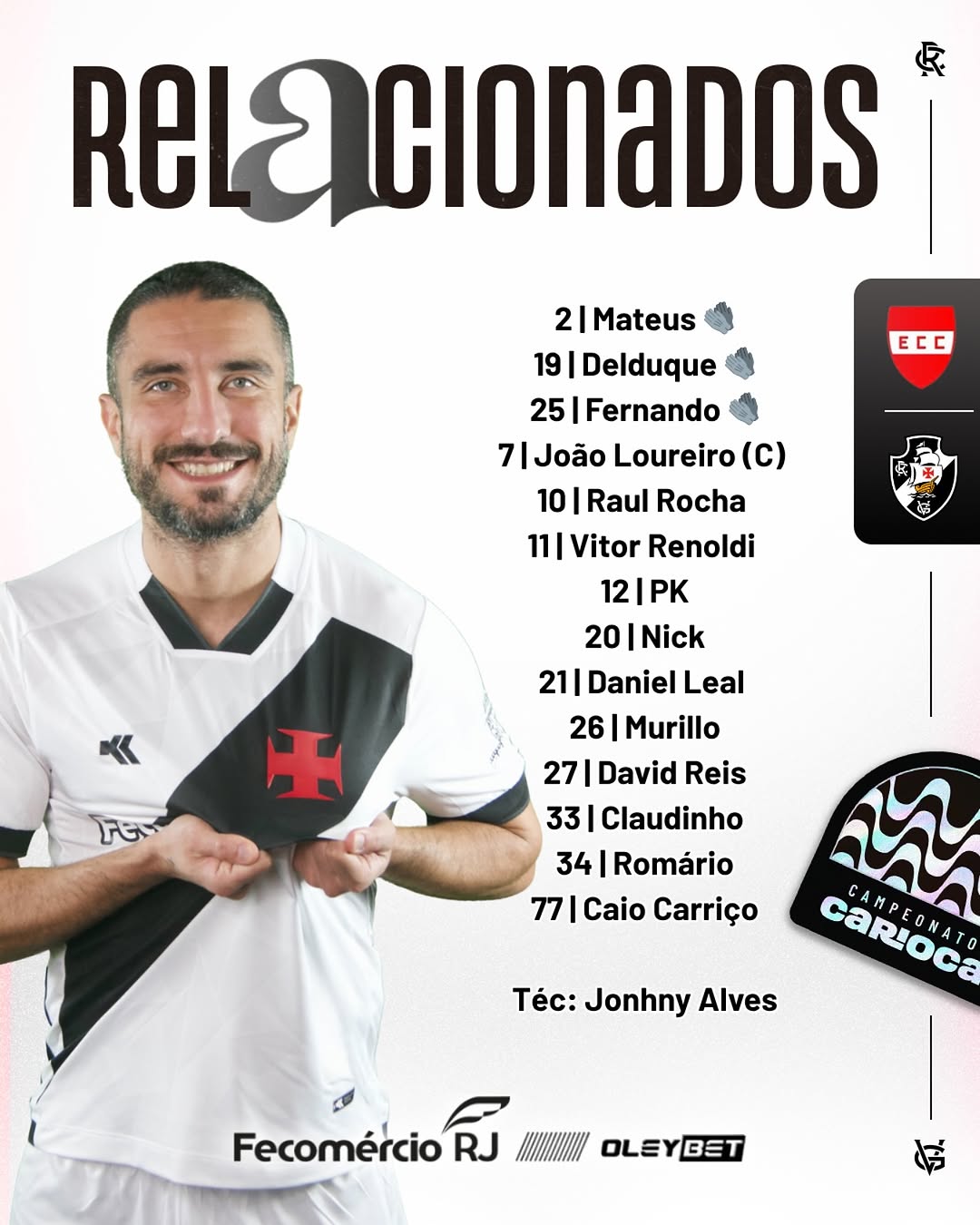 Confira os atletas do Vasco que estarão prontos para o técnico Jonhny Alves hoje, às 21h, no Ginásio Caxambú, enfrentando o Corrêas na partida de ida da grande final do Campeonato Carioca de futsal! 🧢📋