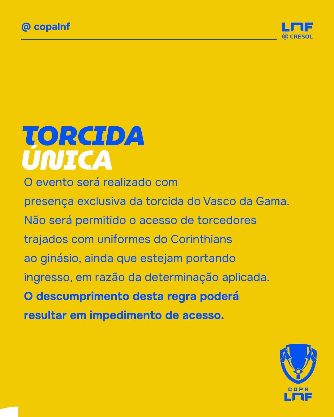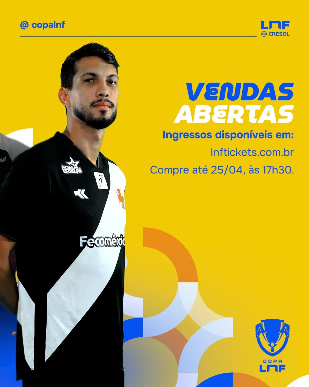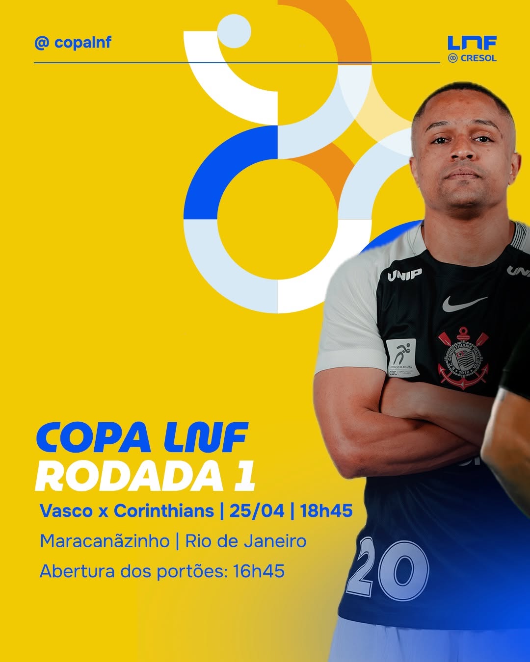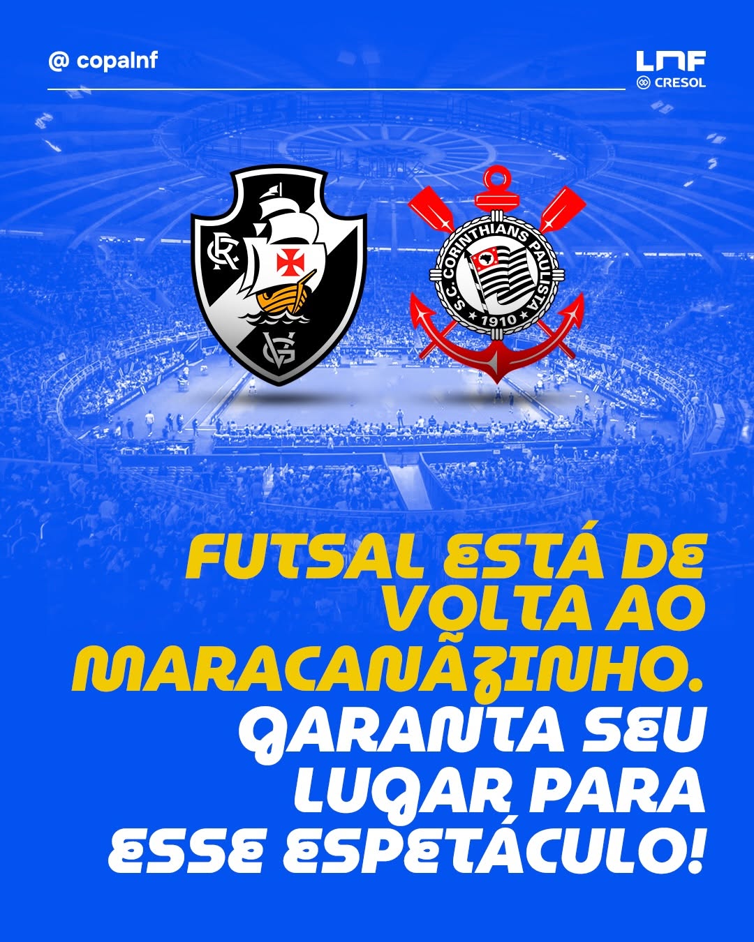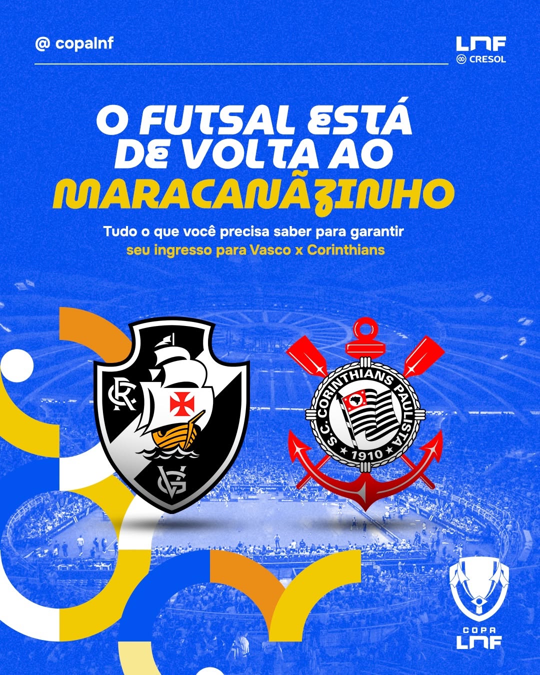Vasco e Corinthians se enfrentam no Maracanãzinho pela Copa LNF de Futsal em 25 de abril; confira detalhes dos ingressos.