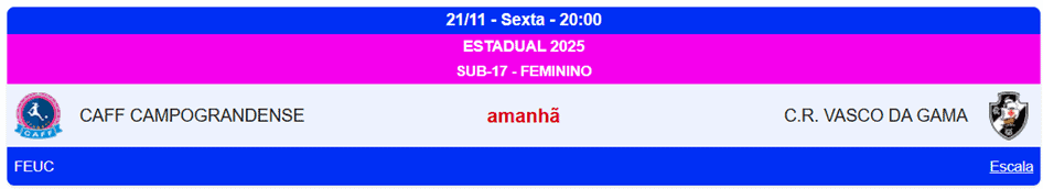 Futsal Feminino Base: Vasco enfrenta a CAFF no confronto de ida da semifinal do Estadual Sub-17 nesta sexta-feira às 20h fora de casa.