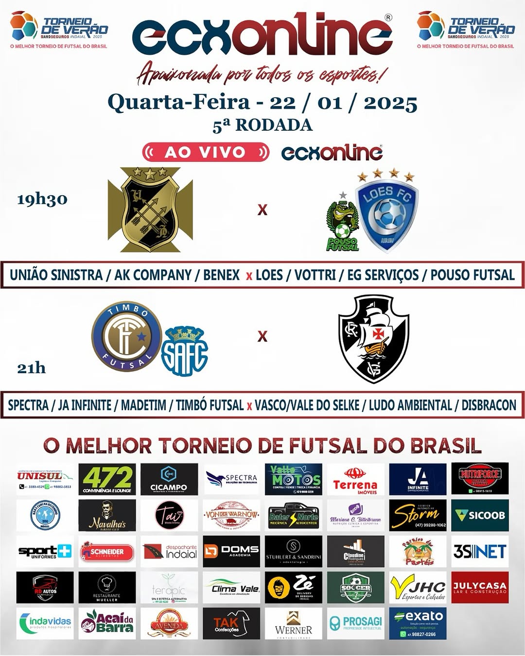 Futsal: Nesta quarta-feira, às 21h, o Vasco se confronta com o Timbó no Torneio de Verão de Indaial, que será transmitido ao vivo pelo Youtube.