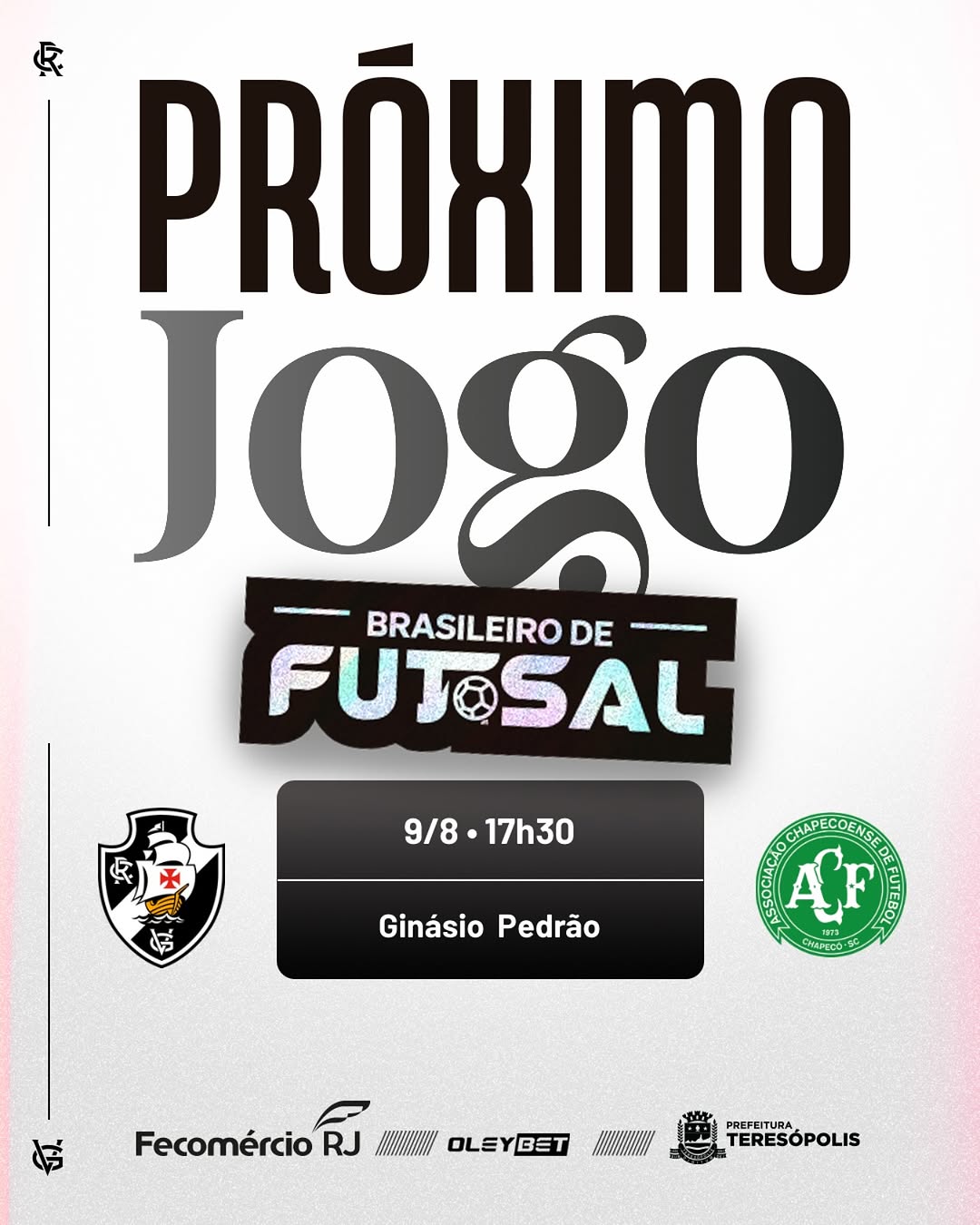 O próximo desafio do Gigante está marcado para este sábado (9/7), durante a 8ª rodada do Campeonato Brasileiro de Futsal. O Vasco da Gama enfrentará a Chapecoense, às 17h30, no Ginásio Pedrão, em Teresópolis!