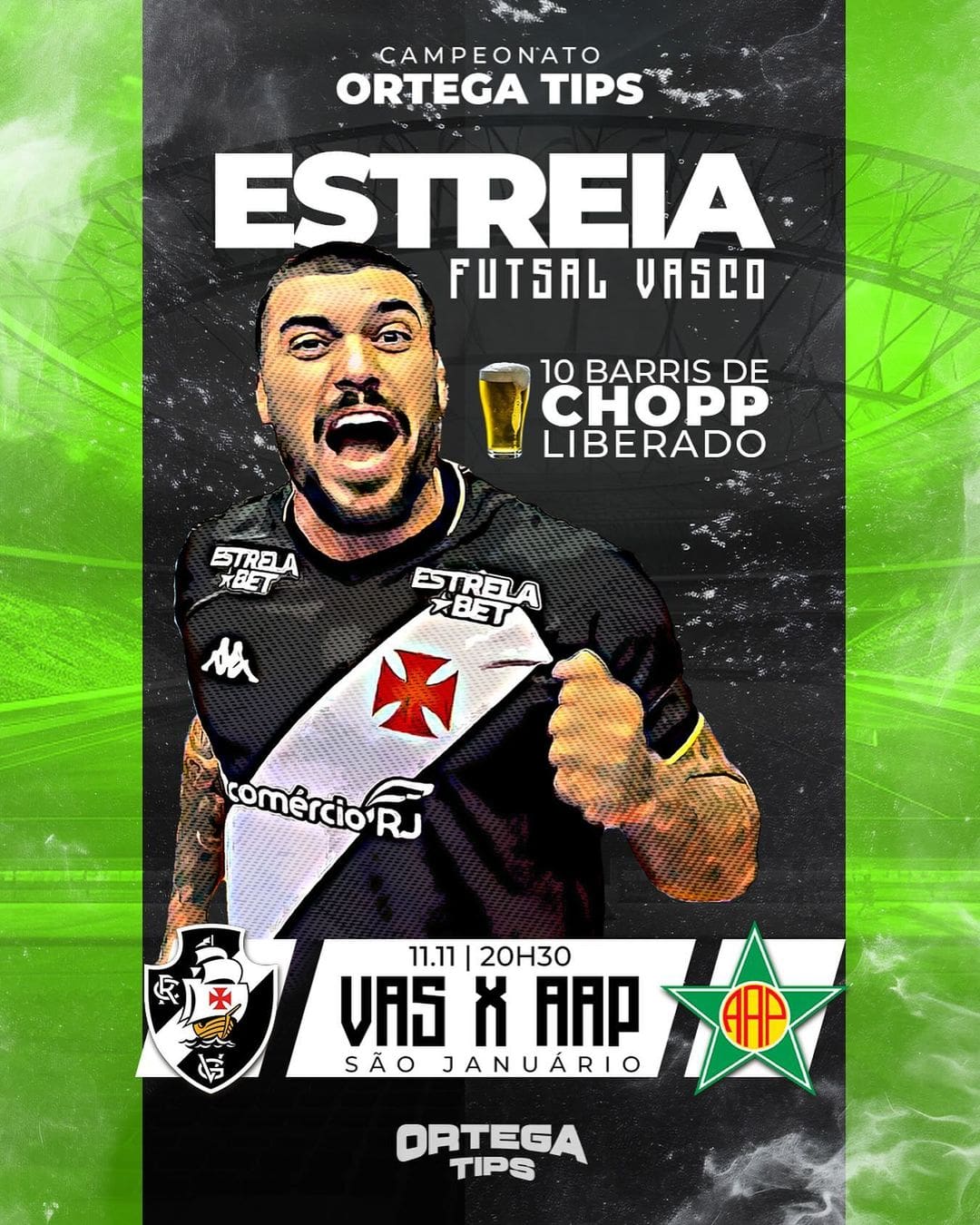 Futsal: Pedro Ortega fará sua estreia pelo Vasco nesta segunda-feira; 10 barris de chopp serão disponibilizados em São Januário.