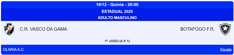 Futsal: Vasco enfrenta o Botafogo em busca do empate para garantir vaga na final do Estadual, nesta quinta-feira às 20h no Olaria