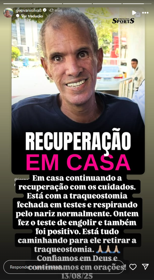 Geovani continua sua recuperação em casa e obtém resultados positivos para a remoção da traqueostomia.