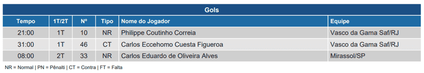 O gol de empate do Mirassol, na partida contra o Vasco, foi creditado à arbitragem como sendo de Carlos Cuesta.