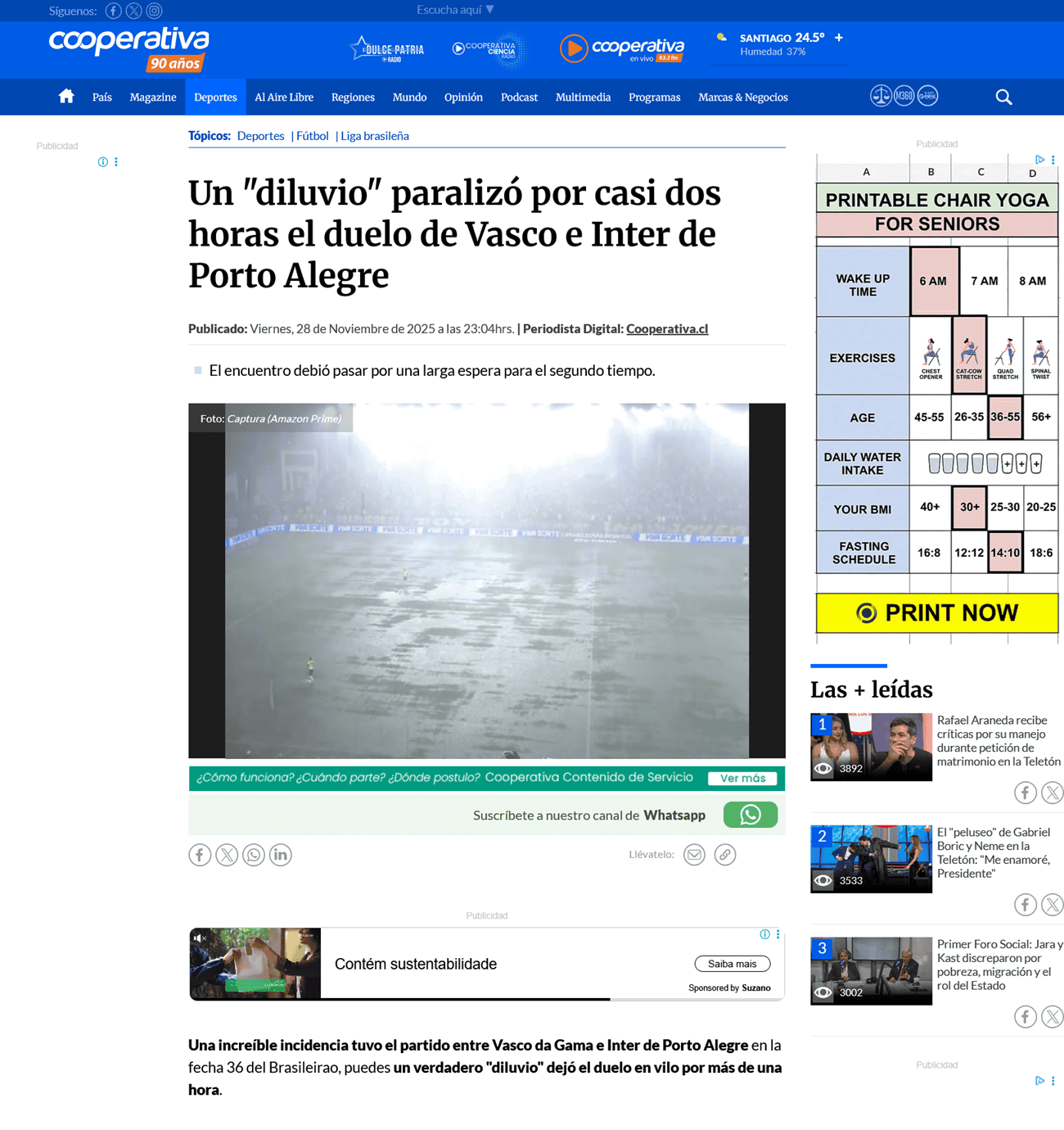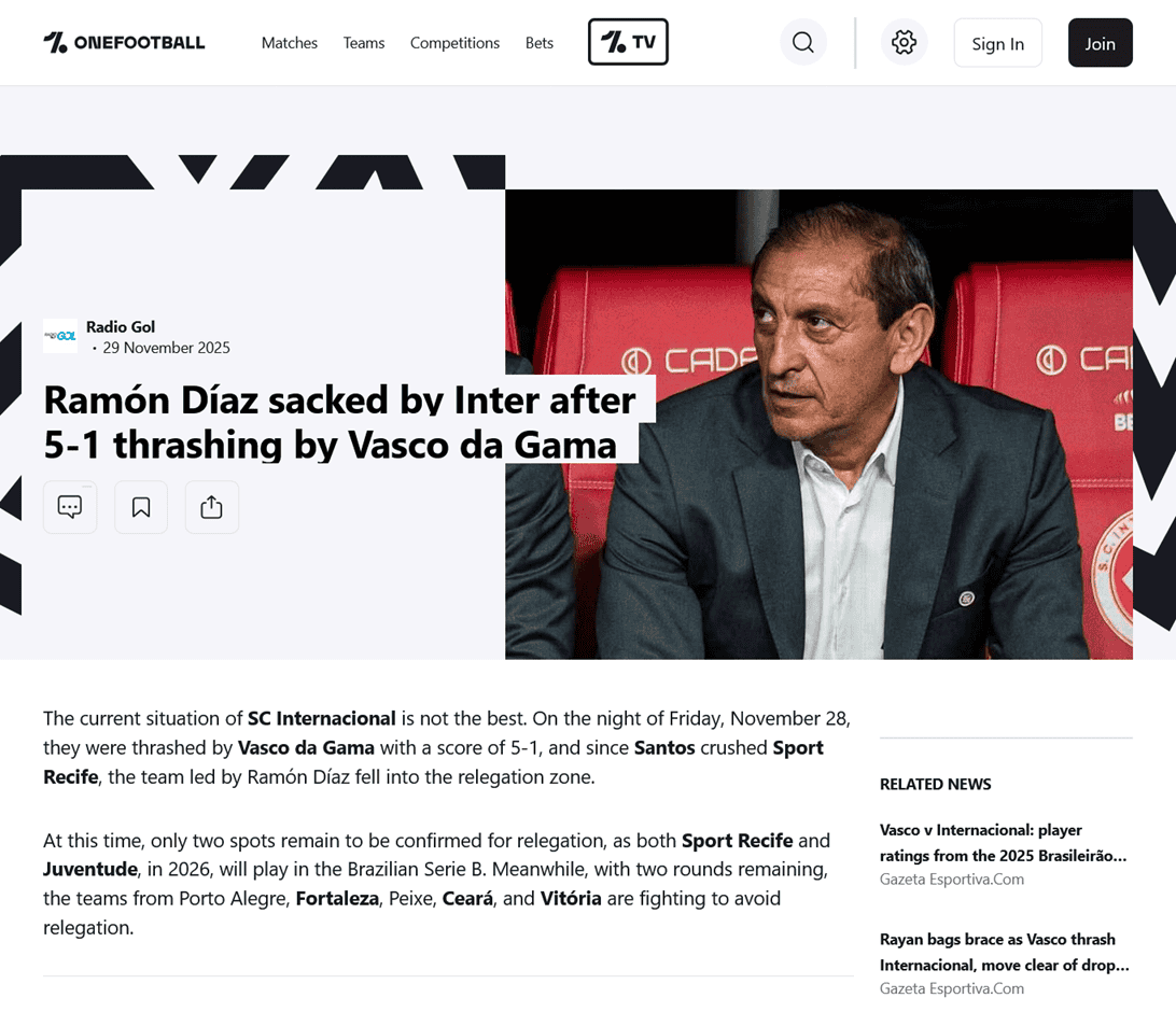 Goleada do Vasco sobre o Inter com forte chuva e saída de Ramón Díaz gera repercussão na mídia internacional