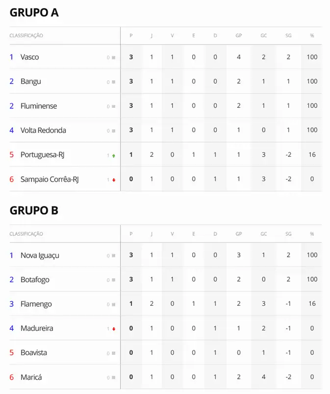 Vasco lidera o Grupo A da Taça Guanabara após vencer na primeira rodada.