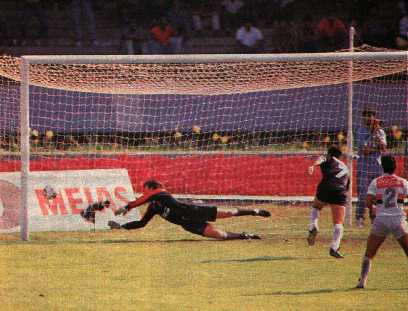 O jogo ficou dramático no segundo tempo. Logo aos cinco minutos, em jogada de raro talento, Zé do Carmo tocou para Boiadeiro, que viu Luiz Carlos Winck solto na ponta direita. O passe saiu preciso, o lateral avançou e cruzou com perfeição. A bola passou por Bebeto e foi parar na cabeça de Sorato, que completou no canto direito de Gilmar (JPEG, 21k e RA, 80k).