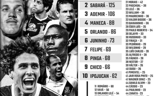 Veja os 50 jogadores com mais passes decisivos na trajetória do Vasco da Gama; Roberto Dinamite se destaca como líder terça-feira, 23/07/2024 às 00:32 — Em Clube