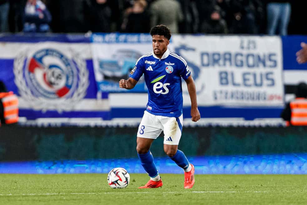 Andrey Santos com a camisa do Strasbourg, da França — Foto: Getty Images