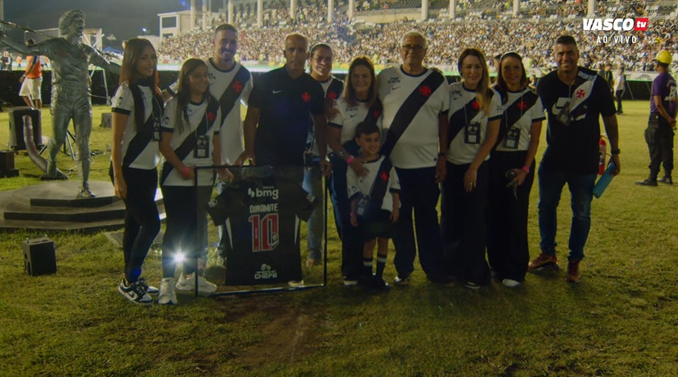 Rodrigo, filho de Dinamite, foi um dos homenageados durante a cerimônia. Próximo à estátua de Roberto em São Januário, a família recebeu a camisa 10 de Dinamite das mãos de Felipe, diretor técnico do Vasco.