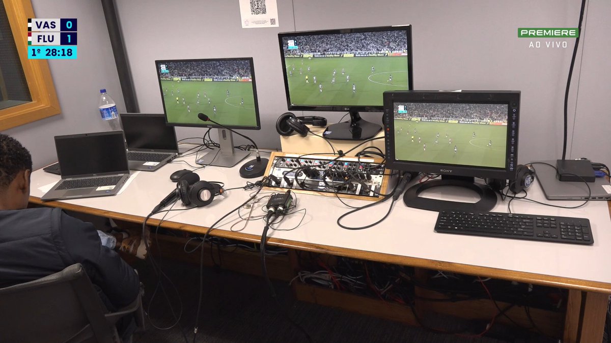 Quem assistiu ao jogo Vasco x Fluminense pelo Premiere se surpreendeu ao ver, por alguns instantes, uma imagem do estúdio de salvaguarda da equipe local, que estava no Maracanã. Curiosamente, essa imagem não apareceu no SporTV, nem na versão normal nem na 4K; foi um fenômeno exclusivo do Premiere. Que coisa incrível! rs