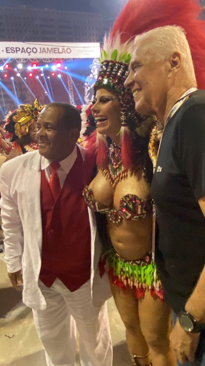 2022: Em seu último Carnaval na Sapucaí, Roberto Dinamite posa ao lado da vascaína Viviane Araújo em frente ao Espaço Jamelão, outro vascaíno
