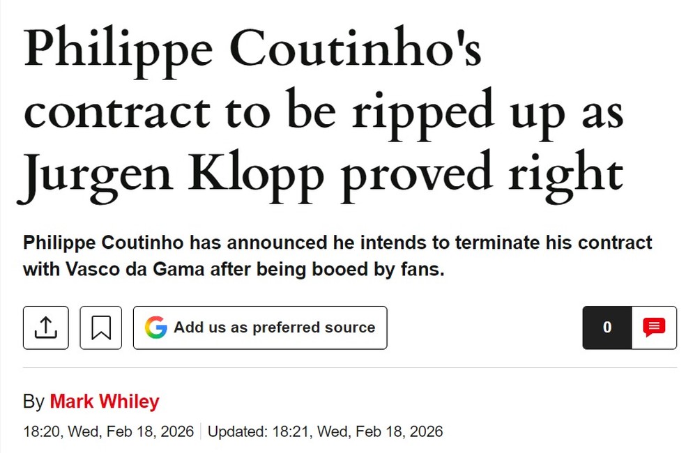 O “Express” seguiu a mesma linha, afirmando: “Contrato de Philippe Coutinho será rasgado e Jürgen Klopp prova que estava certo.”