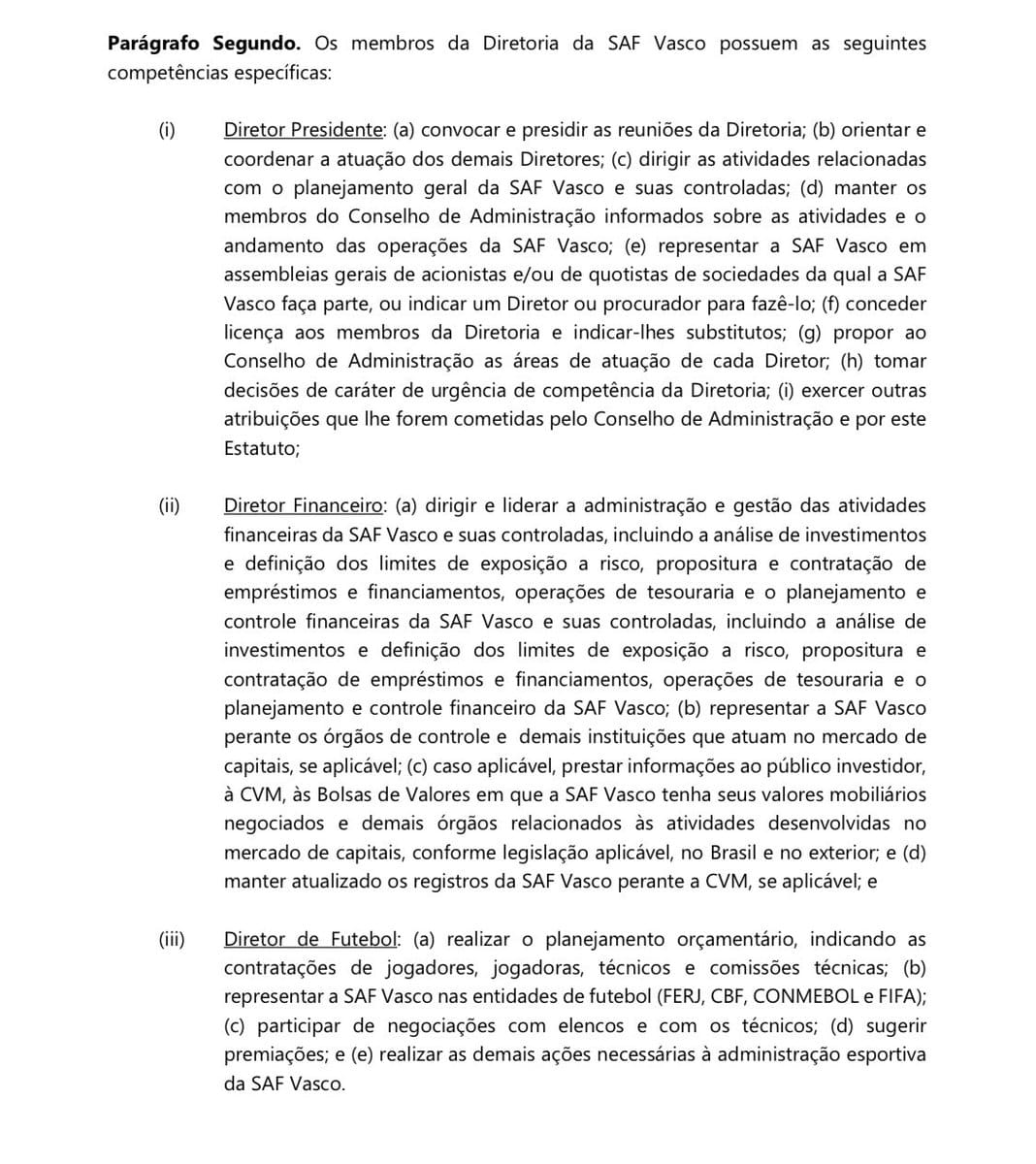 Arena Cruzmaltina @are_cruzmaltina: Segundo o estatuto, Felipe não estaria elegível para ocupar uma posição na diretoria executiva da Vasco SAF, que são os cargos mencionados a seguir:
