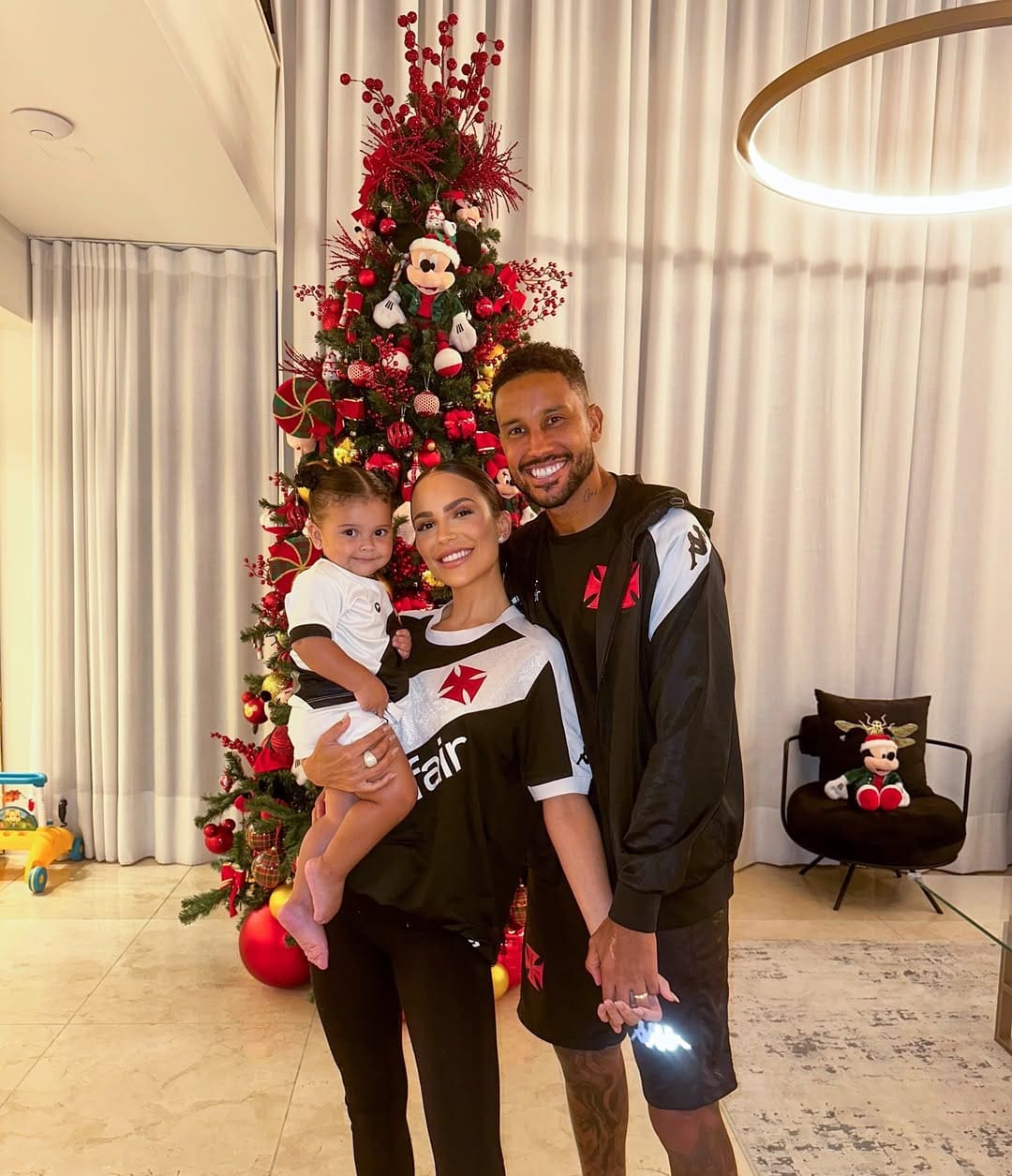 Jair compartilha foto da família com roupas do Vasco em frente à árvore de Natal.