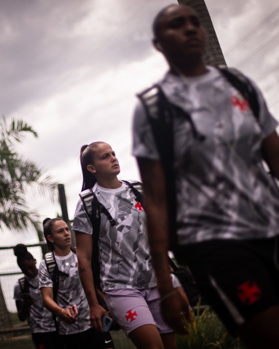 Jogadoras do Vasco chegam ao Estádio Nivaldo Pereira para o próximo compromisso no Campeonato Brasileiro Feminino.