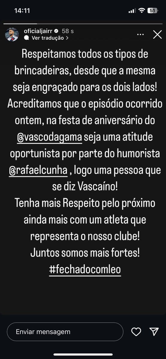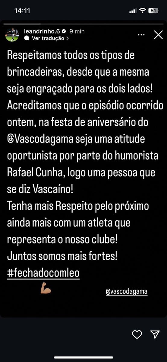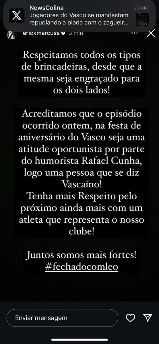 Jogadores se unem em mensagem de apoio ao zagueiro Léo